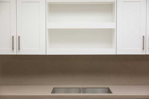Custom made open shelving can create easy access, visual interest and open display within any kitchen. The negative space adds depth and functionality and can be a great choice.